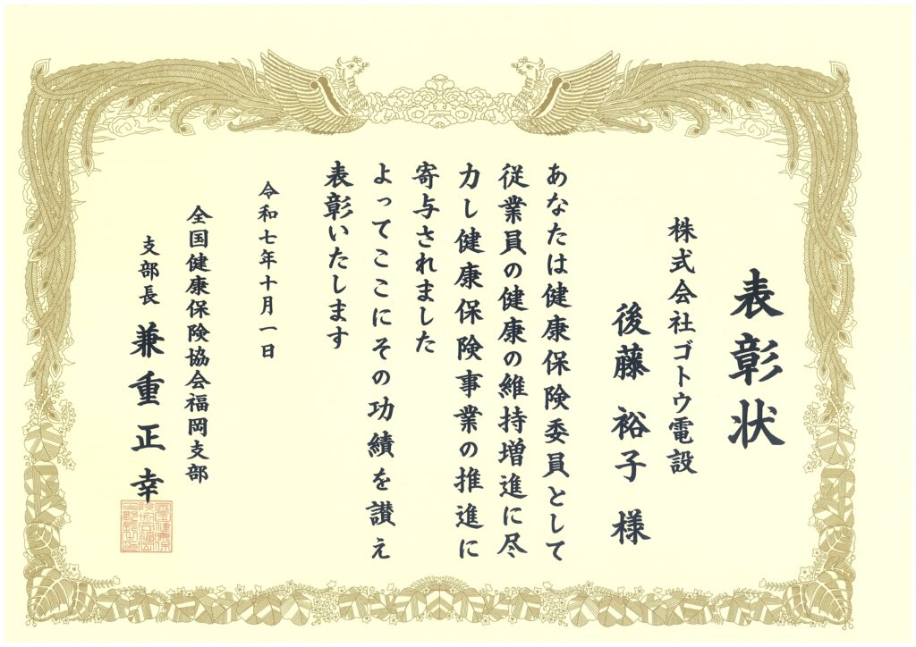 このたび株式会社ゴトウ電設は、全国健康保険協会 福岡支部より、